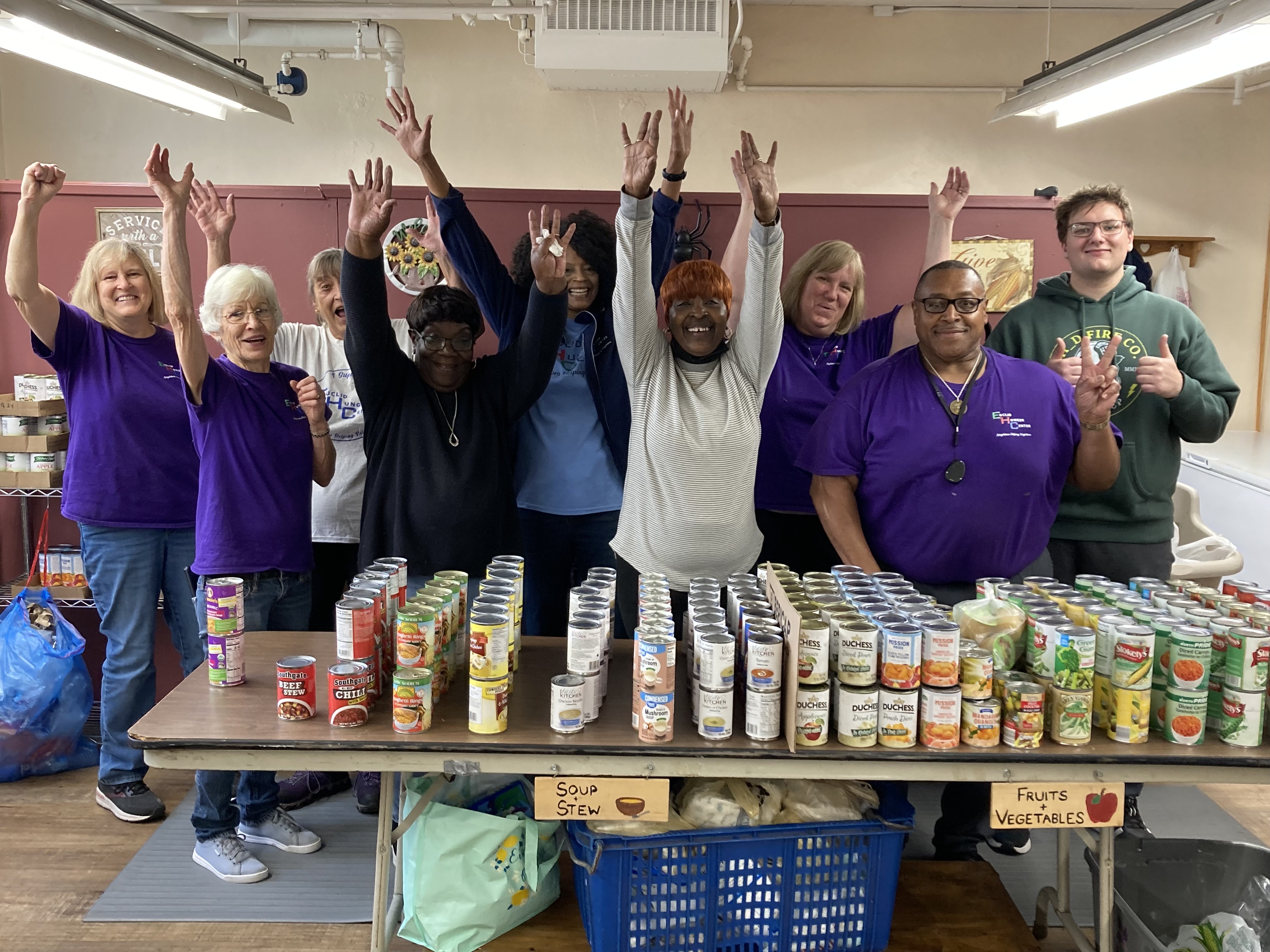 The Euclid Hunger Center operates as a choice pantry for the residents of Euclid. Our pantry allows families to have options, eliminates waste, and creates a more dynamic relationship between our volunteers and our families. Our site relies on the hard work of a group of over 40 volunteers and the efforts of two part time employees. Our volunteers are on the front lines and behind the scenes ensuring that our operation runs efficiently and effectively. Collaboration is key to our success. We receive assistance from Euclid churches, businesses, schools, gardeners, as well as auxiliary groups. We are extremely pleased and proud of the contributions made by individuals and local businesses.